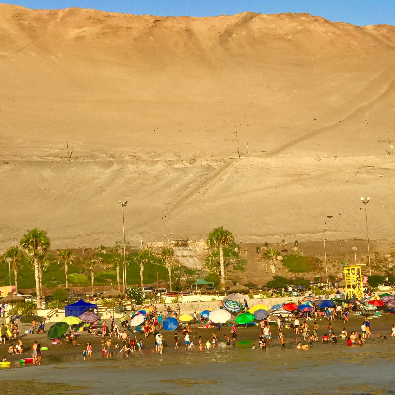 As an example, the vast Atacama Desert runs right down to the sea, and the Chileans and other tourists make the best of it, with a crowded beach not 100 yards from the desert sand - "Hey, we're gonna have a good time, dammit!"